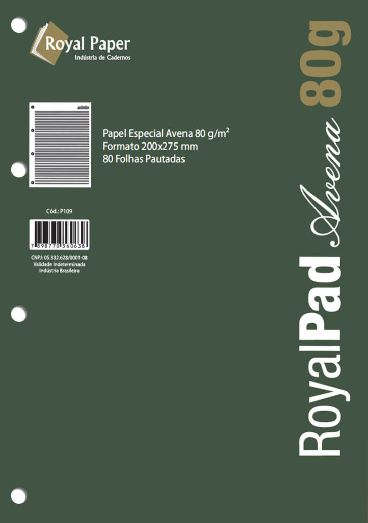 - Miolo com 80 folhas, produzido com papel especial Avena 80 g/m², que proporciona escrita suave e agradável.